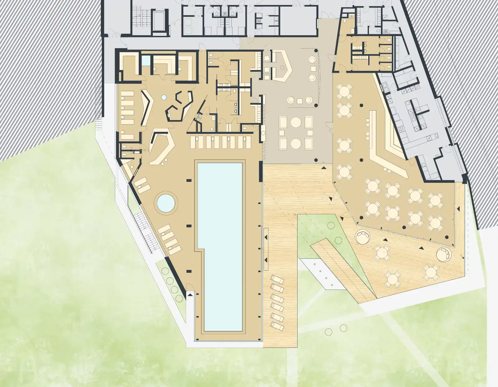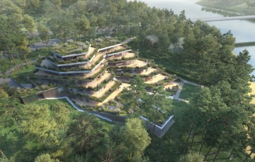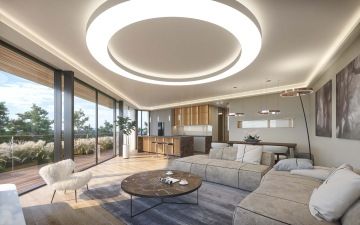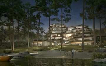 Dům má jedinečné zvlněné tvary. Každý byt je naprosto unikátní. Jeden má prostorný obývák s jídelnou pro větší společnost, jiný terasu, která jej lemuje po celém obvodu. Další je malebné studio vhodné pro páry.